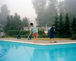 Deze foto’s zijn gemaakt in een week waarin een hittegolf heerste, bijna iedereen liep van ’s ochtends tot ’s avonds laat in een zwembroek rond. Hier vind je drie generaties naast elkaar in een caravan, een echte familie-camping dus iedereen weet alles van elkaar. Het fotoboek “Camping” laat 25 jaar campingleven in Nederland zien waarin naast de verschillen, ook de overeenkomsten worden aangeduid. De zwart/wit foto’s zijn van Bert Nienhuis en de kleurenfoto’s zijn door mij gemaakt. Tekst: Remco Campert | Stichting/Uitgeverij: Duo/Duo | ISBN: 9072971906