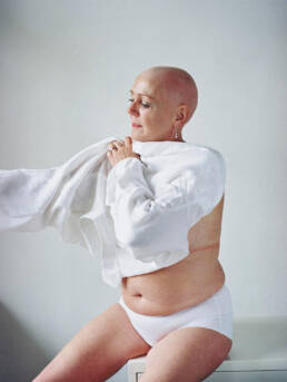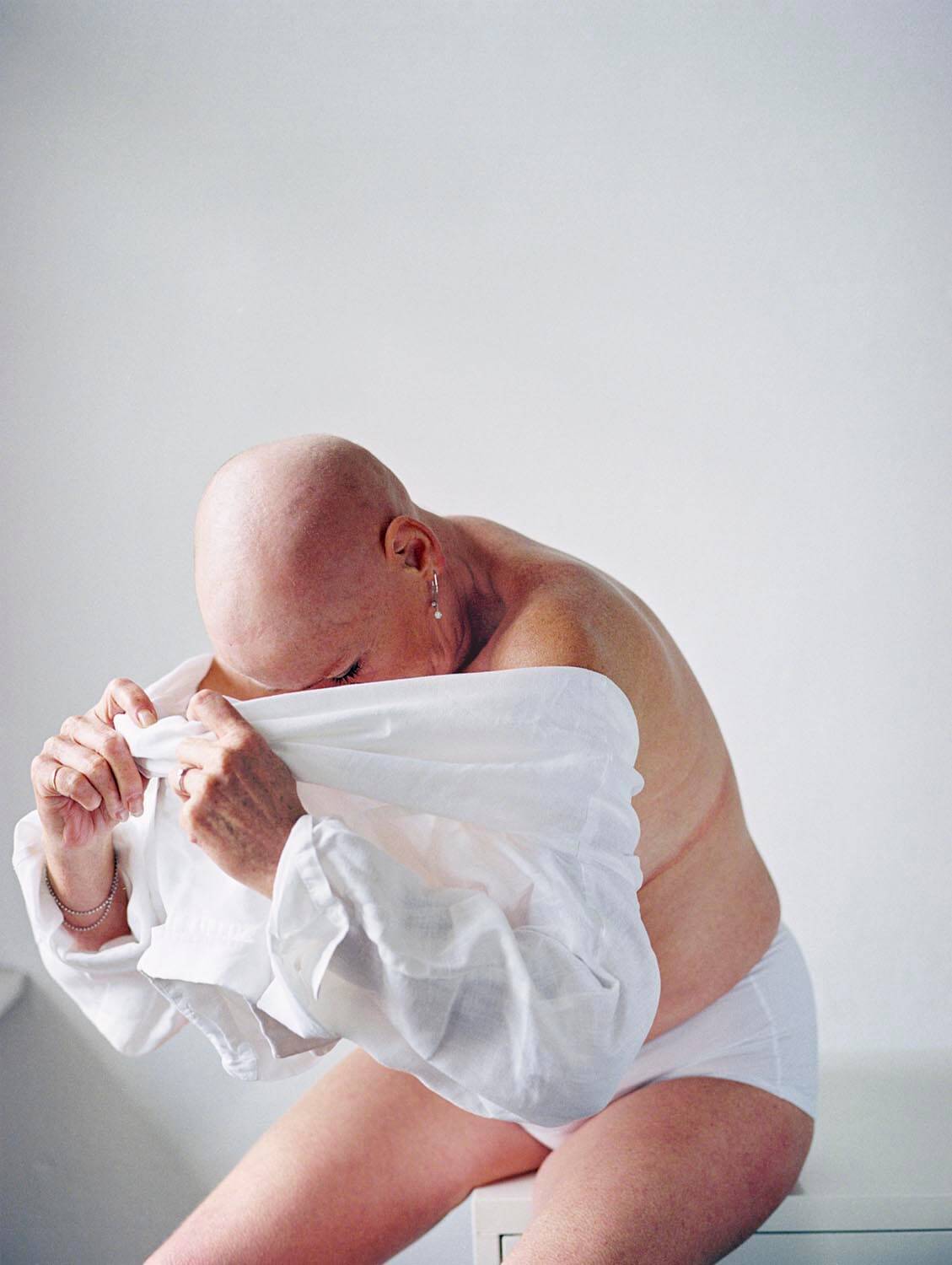 Wanda is de moeder van één van mijn beste vrienden. Ze kreeg borstkanker. Gelukkig was de prognose op genezing goed. Deze zware periode wilde zij vereeuwigd hebben. Met een prachtige pruik van echt rood haar, afkomstig uit Rusland en haar ene borst geamputeerd, wilde zij zich blootgeven voor mijn camera. Tijdens het fotograferen vertelde Wanda over haar eerste ontmoeting met haar man Ivar en over de geboorte van haar twee zoons. Ze vroeg naar mijn ervaringen met mijn beide ouders die ik op vroege leeftijd heb verloren aan kanker. Het was een bijzonder intens gesprek. Het verhaal van Wanda is een intiem en dicht op de huid foto-verslag geworden, waarin zij zich in verschillende facetten laat zien: je ziet haar kwetsbaarheid en verdriet, maar vooral ook haar overlevingsdrang en kracht. Inmiddels is Wanda genezen verklaard en is zij de trotse eigenaresse van een nieuwe borst. Ik voel mij vereerd dat ik haar heb mogen fotograferen in deze heftige periode van haar leven. Het ontroert me dat iemand zich zo bloot heeft gegeven aan mij. Doordat ik Wanda in verschillende stadia heb gefotografeerd, komt heel erg duidelijk in de beelden naar voren wat de ziekte en het herstel met haar hebben gedaan en wat een positief en gelukkig leven ze nu weer heeft. Ik ben er van overtuigd dat deze serie herkenbaar zal zijn voor vrouwen die met borstkanker worden geconfronteerd. Maar dat niet alleen: Wanda zal deze vrouwen ook een houvast bieden in hun gevecht tegen kanker en hen inspireren om door te strijden, hoe moeilijk dat ook is.